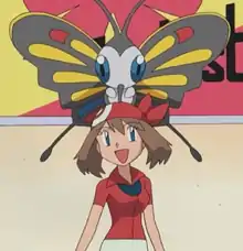 In Come What May!, May, Grace, Drew, and Jessica all competed in the Fallarbor Town Pokémon Contest. For the first round, May had Beautifly spinning while using Silver Wind, a performance that placed her among the four Coordinators advancing to the Contest Battles. There, she defeated Jessica to reach the final round, where she found herself up against Grace. The two fought a hard battle, with Grace's Medicham using Beautifly's String Shot to its advantage and encasing Beautifly in ice with an Ice Punch. However, May was able to lend a few direct hits and use some effective combinations, eventually winning the match and obtaining her very first Ribbon.