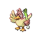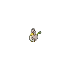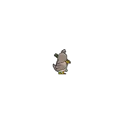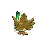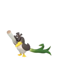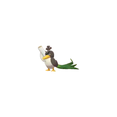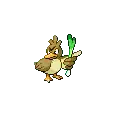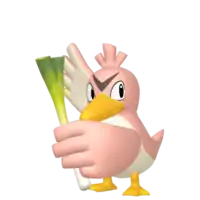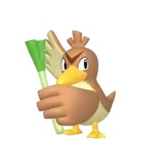 Farfetch'd is always seen carrying a leek stalk or spring onion. It carries this sprig in its wings, but sometimes chooses to hold it in its beak or feet instead. Unable to live without its stick, Farfetch'd will defend the stalk with its life. Losing it can leave Farfetch'd defenseless. Known uses for the stick include use as a weapon, nesting material, and emergency food source. It is selective about which sticks it will use and has been known to fight over good ones. Farfetch'd is found in temperate grasslands.