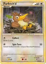 Farfetch'd (Japanese: カモネギ Kamonegi) is a Colorless-type Basic Pokémon card. It is part of the HeartGold & SoulSilver expansion.