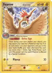 Fearow δ (Japanese: オニドリル δ Onidrill δ) is a Lightning-type Stage 1 Pokémon card. It is part of the EX Crystal Guardians expansion.