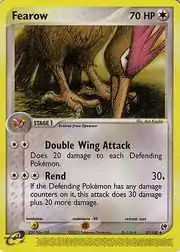 Fearow (Japanese: オニドリル Onidrill) is a Colorless-type Stage 1 Pokémon card. It is part of the EX Sandstorm expansion.