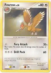 Fury Attack and Drill Peck are both moves in the Pokémon games that Fearow can learn. This card's Pokédex entry comes from Pokémon Diamond and Pearl.