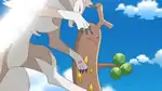 Sudowoodo jumps into the air while the opponent isn't looking, and while the opponent looks for it, Sudowoodo kicks it, or Sudowoodo sways before standing still and focusing on the opponent. When it senses where to strike, it immediately hits the opponent with the green spheres on the end of one of its arms. | ||