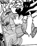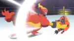 Magmortar stands on its tippy toes and pretends to look for something as it blushes. When the opponent lets their guard down, it punches them with one of its hands. | ||