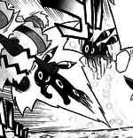 Umbreon charges at the opponent and stabs it with one of its paws, or Umbreon charges to the opponent's side and jumps, kicking it with one of its legs. | ||