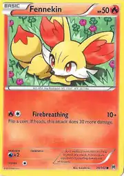 Fennekin (Japanese: フォッコ Fokko) is a Fire-type Basic Pokémon card. It is part of the BREAKthrough expansion.