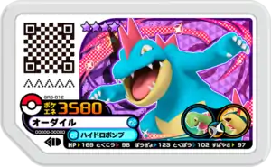 Feraligatr (Japanese: オーダイル Ordile) is a Grade 4 Pokémon Ga-Olé disk. It is part of the third Grand Rush set.