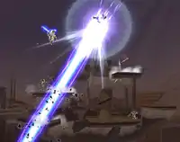 Aura Storm (Japanese: はどうのあらし Wave Storm) is Lucario's Final Smash in Super Smash Bros. Brawl and Super Smash Bros. Ultimate. Lucario jumps up into the air and uses aura to unleash a powerful beam attack. The beam can be controlled by tilting the Control Stick. Lucario can also slightly damage opponents if it comes into contact with them while jumping up at the start of the Final Smash.