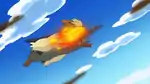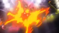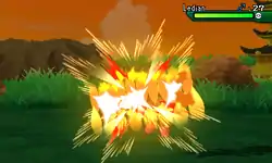 | Pyroar's mouth and fangs become surrounded in red-orange flames and it bites down on the opponent. | |||