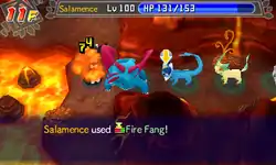 Salamence bites down on the opponent. When it does, multiple streams of fire come out of its mouth and spreads around the opponent. | ||