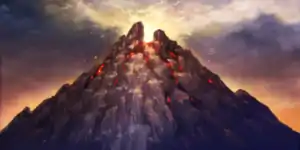 Fire Island Volcano (Japanese: 炎の島の火山 Flame Island Volcano) is a dungeon in Pokémon Super Mystery Dungeon that is located on Fire Island in the Sea of Wonders. This dungeon is visited as a 'field trip' by the Expedition Society, because Ampharos wanted to meet with Entei, who resides there. On the first visit, two boss fights occur here, one against Magmortar and four Magmar, and another against Entei. During the fight against Entei, the player's and partner's Harmony Scarves light up and they evolve for the first time.