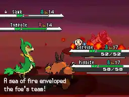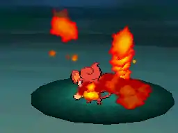 A column of fire hits the target. When used with its grass equivalent, its power increases and a vast sea of fire appears.