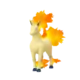 Rapidash lowers its head and releases a spiral of fire from its mane at the opponent, or Rapidash fires a spiraling flame at the opponent from its mouth. | ||