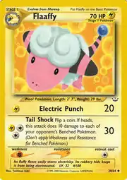 Flaaffy (Japanese: モココ Mokoko) is a Lightning-type Stage 1 Pokémon card. It is part of the Neo Revelation expansion.