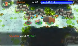 In Red Rescue Team and Blue Rescue Team, Flail is a move with 2 base power, 100% accuracy, and 17 PP. The user attacks enemy in the front, with the final damage being multiplied by 2 when at 75-51% HP, 4 when at 50-26% and 8 when at 25% or lower.