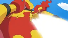 Sometimes, when the opponent makes physical contact with Magmortar, its body periodically becomes covered in flames, hurting it. | ||