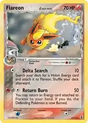 Flareon δ (Japanese: ブースター δ Booster δ) is a dual-type Fire/Metal Stage 1 Pokémon card. It is part of the EX Delta Species expansion.