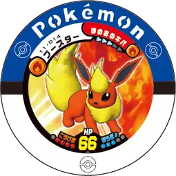 Flareon (Japanese: ブースター Booster) is a Pokémon Battrio puck. It is part of the Decisive Battle! Kyogre and Groudon expansion.