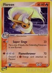Flareon (Japanese: ブースター Booster) is a Fire-type Stage 1 Pokémon card. It is part of the EX Sandstorm expansion.