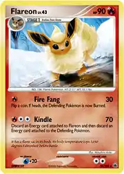 Flareon (Japanese: ブースター Booster) is a Fire-type Stage 1 Pokémon card. It is part of the Majestic Dawn expansion.