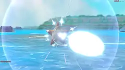 Boldore's body becomes outlined in white energy and the energy starts to gather inside Boldore's ear. A white orb of energy with light blue energy inside of it then forms in front of Boldore's ear, and it fires a white beam of energy with light blue energy inside it at the opponent. | ||