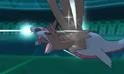 | Mega Aggron creates a white ball of energy in front of its mouth and then fires a white beam from it at the opponent. | |||