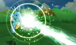 Druddigon's body becomes outlined in white energy. A white orb of energy with light blue energy then forms inside of Druddigon's mouth, and it fires a white beam of energy with light blue energy from it at the opponent. | ||