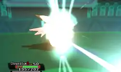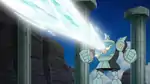 Dialga fires a white beam of energy with light blue energy from its mouth at the opponent. | ||