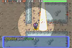 In Red Rescue Team and Blue Rescue Team, and Explorers of Time, Darkness and Sky, Flatter is a move with 17PP and 100% accuracy. It targets enemy in the front, causing it to be confused and increasing its Special Attack stat by two stages. This move is affected by Magic Coat, Taunt and the Muzzled status condition.