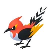 Fletchinder appears to be a cross between a Japanese robin and a waxwing. Its Fire type may be a reference to the flame robin.