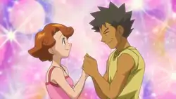 In Grating Spaces, Flint and Lola were sent on a plane trip by Team Rocket, who were posing as Gym stylists and attempting to redecorate the Pewter Gym in a bid to take over the facility. Brock visited home and was shocked to see his parents' absences, and the Gym's latest renovation. When the pair returned from their trip, Brock scolded them for abandoning the children once again and informed them that they had fallen for one of Team Rocket's schemes.