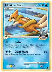 Gym Leader Wake owns a level 37 male Floatzel in Pokémon Platinum. The interior of the Pastoria Gym is featured in the illustration.