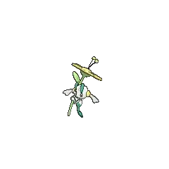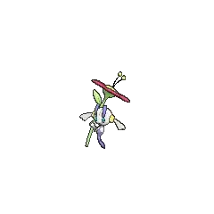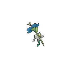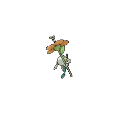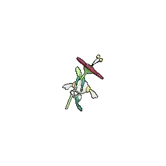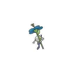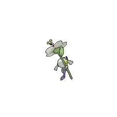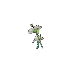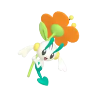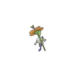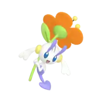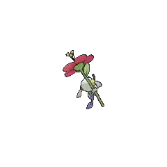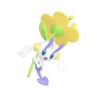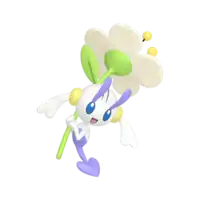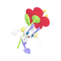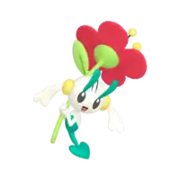 Floette also holds a flower with five rounded petals that can be red, yellow, orange, blue, or white. The flower has three yellow stamens and a long green stem with a single leaf. A more gorgeous flower contains more power for Floette. It flutters around and cares for flowers by giving its own power to them. If the flowers of a well-tended flower bed bloom, Floette celebrates with an elegant dance. However, it will never forgive anyone who tramples a flowerbed.