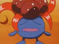 When Team Rocket attacked, using a powder made from the Stun Stem to stop the group, Florinda and Gloom were the only ones unaffected. Gloom confronted Team Rocket as they sent out Arbok and Weezing. Gloom initially couldn't see anything from the smoke Weezing caused, but it used Double Team to confuse them. It then finished them off with a Solar Beam, sending them blasting off. It reappeared in a flashback in Bulbasaur... the Ambassador!. Gloom's known moves are Double Team and Solar Beam. | ||