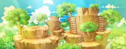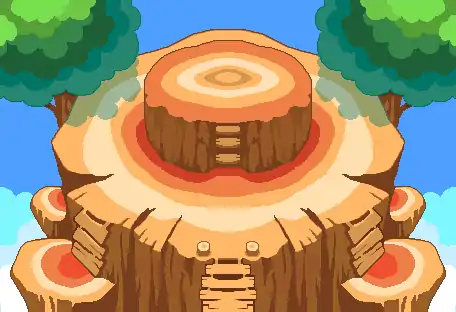 Flyaway Forest is a giant tree stump. It has leafy branches coming off the side.