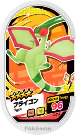 Flygon (Japanese: フライゴン Flygon) is a Grade 4 Pokémon Mezastar tag. It is part of the fourth set.