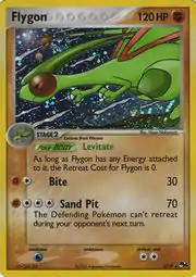Flygon (Japanese: フライゴン Frygon) is a Fighting-type Stage 1 Pokémon card. It is part of POP Series 4.