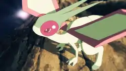 Flygon debuted in Jirachi: Wish Maker as one of the residents of Forina, Jirachi's home. It helped save Jirachi from Butler and then participated in the battle against Meta Groudon. It briefly reappeared in a flashback in the opening sequence of Destiny Deoxys, and also in a montage in The Rise of Darkrai that chronicled the preceding nine movies.