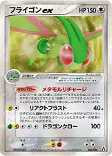 Flygon ex (Japanese: フライゴンex Frygon ex) is a Colorless-type Stage 2 Pokémon-ex card. It is part of the EX Legend Maker expansion.
