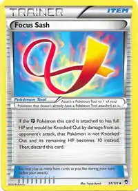 Focus Sash (Japanese: きあいのタスキ Fighting Spirit Sash) is a Pokémon Tool card. It was first released as part of the Furious Fists expansion.
