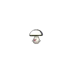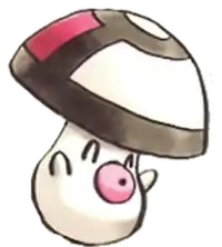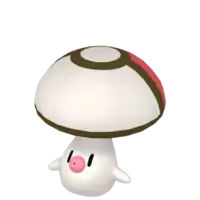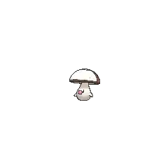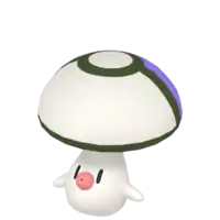 Foongus is a white, mushroom-like Pokémon with a cap that looks quite similar to a Poké Ball. It has stubby, digit-less arms, a large pink mouth, and pinprick-like dark eyes. It uses the Poké Ball-like pattern on its head to lure people and Pokémon in grassy areas, then releases a cloud of poisonous spores to defend itself. The spores can also be used as a stomach medicine if thoroughly dried. It moves by either hopping or turning on its side and rolling on its cap. It is one of the shortest Grass-type Pokémon.