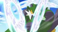 After Team Rocket destroyed Tornadus's shrine in The Mighty Accelguard to the Rescue!, he returned to Milos Island in Stopping the Rage of Legends! Part 1 while Lewis and his Gothorita were praying for fertility at Landorus's obelisk. He instantly attacked Ash and co with his Hurricane attack and caused damage to the forest with Air Slash. While Ash, Iris and Lewis fled to check on Tornadus's shrine, the Cyclone Pokémon battled with Cilan and his Pansage. Being far stronger than Pansage, Tornadus was able to easily shrug off his Bullet Seed and SolarBeam before defeating him. Thundurus soon appeared, having also had his shrine destroyed by Team Rocket, and confronted Tornadus. The two begin fighting once again, while briskly smacking down Ash's Pikachu, Snivy, Iris's Excadrill and Cilan's Stunfisk, who were attempting to stop their fight. As a result of their battle, the island turned chaotic and many wild Pokémon fled, as Ash and the others went to pray again for Landorus's help.