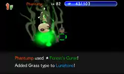 Forest's Curse (Japanese: もりののろい Forest's Curse) is a non-damaging Grass-type move introduced in Generation VI. It is the signature move of Phantump and Trevenant.