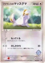 Forina's Linoone (Japanese: ファウンスのマッスグマ Fauns's Massuguma) is a Colorless-type Basic Pokémon card. It is part of the Movie Commemoration VS Pack.