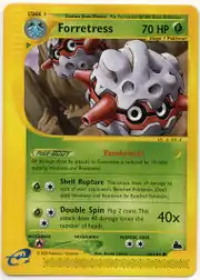 Forretress (Japanese: フォレトス Foretos) is a Grass-type Stage 1 Pokémon card. It is part of the Skyridge expansion.