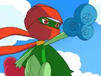However, when Team Rocket attempted to steal all the Berries from the garden, they also stole the red scarf when Roserade tried to stop them, causing the Bouquet Pokémon to become timid again. However, Forsythia convinced Roserade that it was still strong. Thanks to Forsythia's kind words, Roserade's confidence returned, and Team Rocket were soon sent blasting off. Roserade later helped restore the garden with Lotad's help. Roserade's known moves are Magical Leaf, Petal Dance, and Sunny Day. | ||