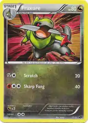Scratch is a move in the Pokémon games that Fraxure can learn. The Japanese name of Sharp Fang is that of the game item, Razor Fang. This card's Pokédex entry comes from Pokémon White.