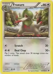 Scratch and Dual Chop are both moves in the Pokémon games that Fraxure can learn. This card's Pokédex entry comes from Pokémon Black.