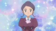 Freesia is one of the people who works for Princess Salvia, who she appears to have a close friendship with. She confronted Ash and his friends outside of the Arrowroot Town Contest Hall, when Brock suddenly began to flirt with her. After Brock's Croagunk attacked him, Freesia asked Dawn to help the princess by switching places. After they did so, she stayed by Dawn's side to advise her throughout the required royal duties.
