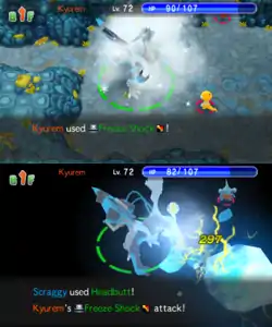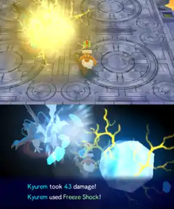 Freeze Shock (Japanese: フリーズボルト Freeze Bolt) is a damage-dealing Ice-type move introduced in Generation V. It is one of the signature moves of Black Kyurem.